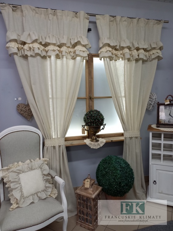 KOMPLET , KPL ZASŁONY / BOKI Z TUBKAMI KORONKA NATURA FALBANY PROWANSJA