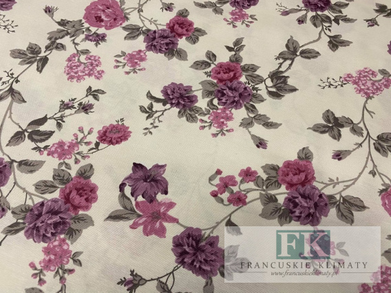 • KUPON TKANINA 37 cm x 160 cm KWIATY RÓŻ/FIOLET OKAZJA