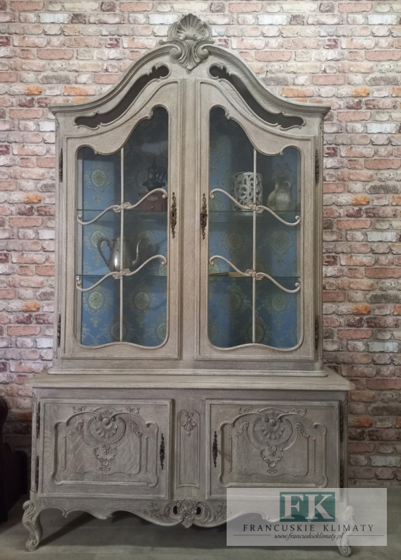 Zachwycający,  francuski kredens, cudownie  stylizowany na antyczne  drewno .