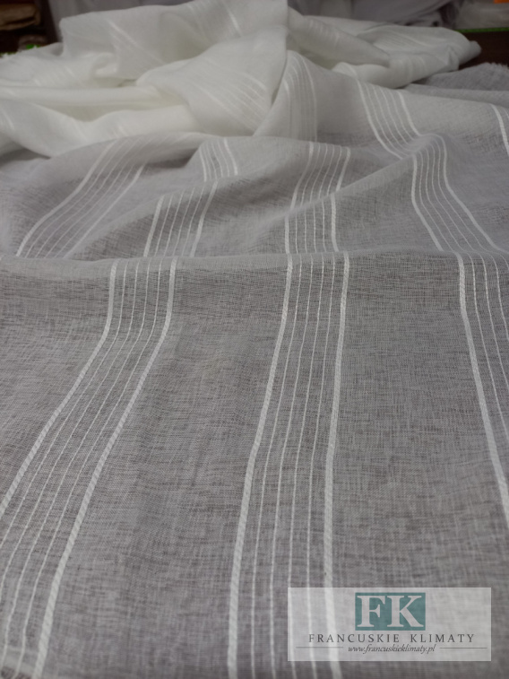 PRZEPIĘKNA TKANINA BATYSTOWA W PASY , DOŁEM WYKOŃCZONA FABRYCZNĄ OŁOWIANKĄ