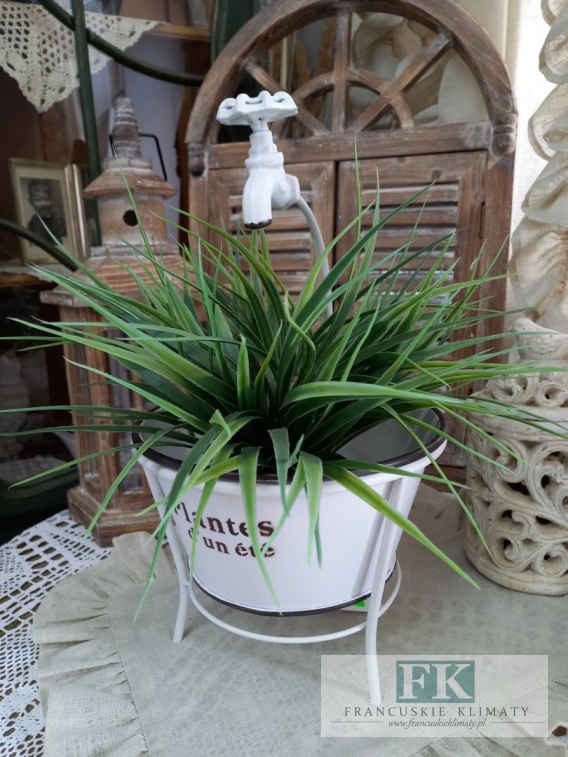 CUDOWNA DEKORACJA KWIETNIK W FORMIE DONICY Z KRANEM
