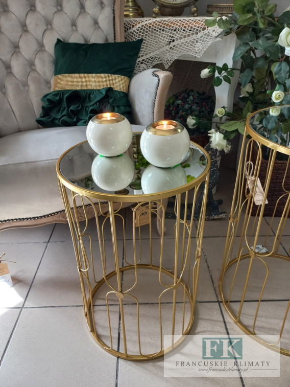 WYJĄTKOWY STOLIK METALOWY Z LUSTRZANYM BLATEM