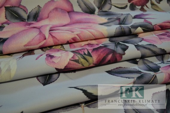 Tkanina w przepiękny modny kolorowy wzór pudrowe róże, który ozdobi każdy dom:)