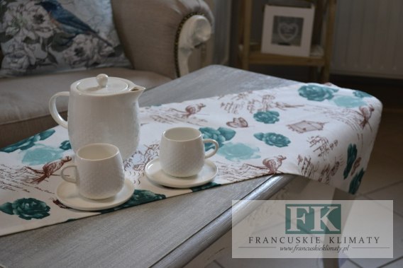 Bieżnik świetnie się sprawdzi jako dodatek do wnętrz w stylu francuskim, shabby chic, vintage, prowansalskim, a także w klasycznych wnętrzach.