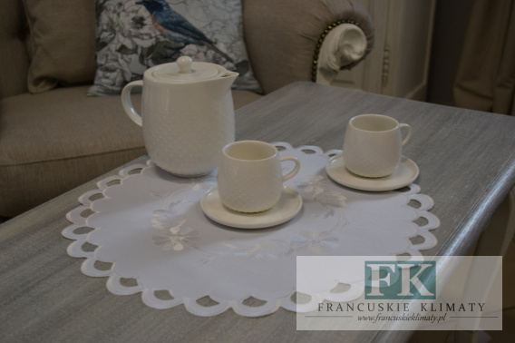 DEKORACYJNY BIEŻNIK SERWETKA HAFTOWANA HAFT KOŁO 40 CM FRANCUSKI PROWANSALSKI