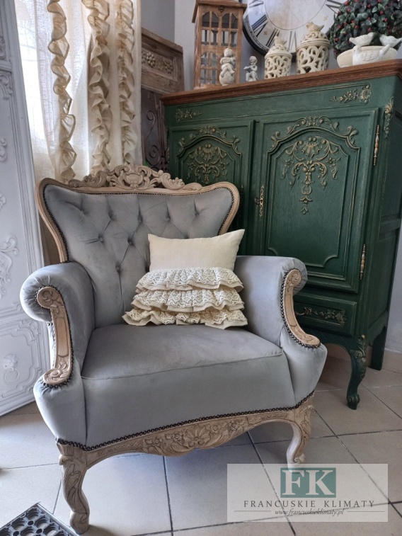 FRANCUSKI FOTEL PLUSZ antyczne drewno