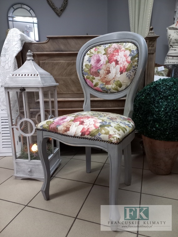 FRANCUSKIE KRZESŁO SZARY medalion KWIATY DĄB