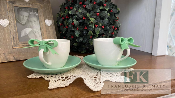 KOMPLET KPL FILIŻANEK ZIELONE KOKARDKI ZE SPODKIEM