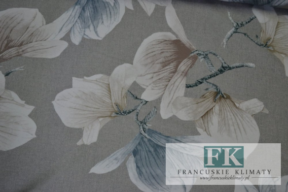 KUPON TKANINA 350 cm x 150 cm KWIATY NA SIWYM TLE OKAZJA