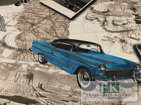 • KUPON TKANINA ROUTE 66 AUTA 95 CM X 150 CM OKAZJA