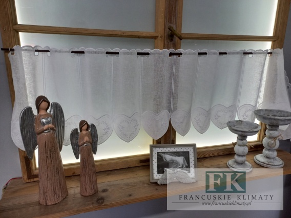 • METRAŻ ! ZAZDROSTKA SERCE WITRAŻ BIEL HAFT WITRAŻ WYS 40 CM , PROWANSJA , VINTAGE , RETRO , SHABBY CHIC