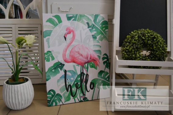 OBRAZ NA PŁÓTNIE FLAMING HELLO 60X45 PROWANSJA SHABBY PŁÓTNO