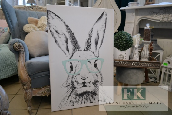 OBRAZ NA PŁÓTNIE KRÓLIK ZAJĄC 60/90 W OKULARACH MIĘTOWYCH