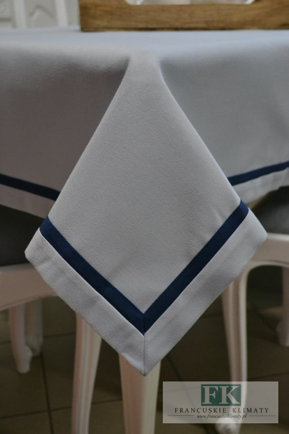• OBRUS 140x180 SZARY + GRANATOWA LAMÓWKA