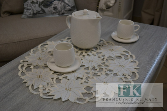 Bieżnik świetnie się sprawdzi jako dodatek do wnętrz w stylu francuskim, shabby chic, vintage, prowansalskim, a także w klasycznych wnętrzach.