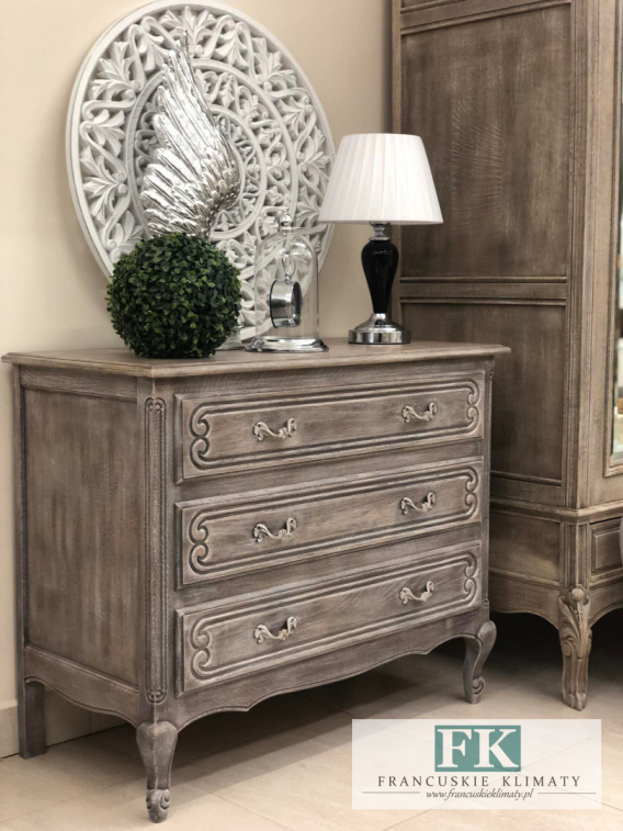Piękna , francuska komoda , cudownie stylizowana na antyczne , stare , patynowane drewno .