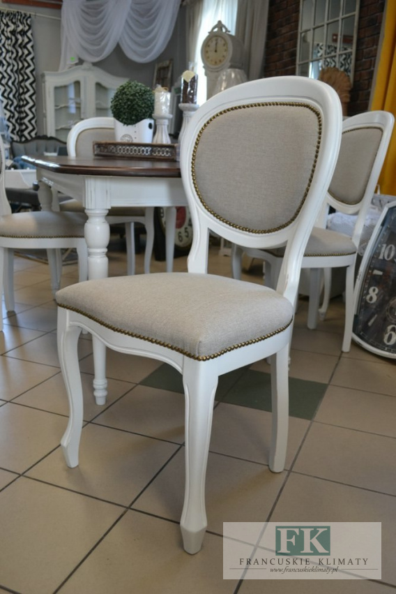 Cudne , nowe krzesło dębowe w kolorze białym (ciepły odcień )