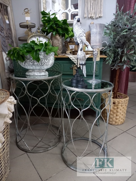 WYJĄTKOWY STOLIK METALOWY W KOLORZE SREBRA Z LUSTRZANYM BLATEM.