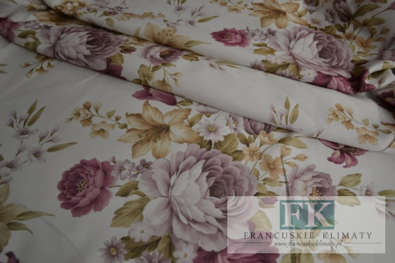 OPIS: tkanina poliestrowa jednostronna w przepiękny modny wzór dużych prowansalskich kwiatów Materiał na pewno każdego zachwyci:)