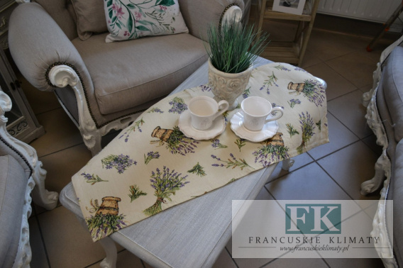Bieżnik świetnie się sprawdzi jako dodatek do wnętrz w stylu francuskim, shabby chic, vintage, prowansalskim, a także w klasycznych wnętrzach.