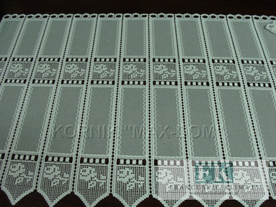 OPIS: ŚLICZNY, NOWY WZÓR , ZAZDROSTKA wykonana jest z wysokogatunkowej etaminy i gipiury w kolorze białym i kremowym (do wyboru).       Górą wykończona gipiurowymi szelkami do wdziania pręcika od zazdrostki lub rurki od karnisza (średnica max. 1,6 cm ). Środkiem zazdrostka przyozdobiona szerokim pasem gipiury, która zdobi i wzbogaca całość . ZAZDROSTKA nie wymaga obszycia - od razu można ją wieszać na patyk lub rurkę od karnisza. Dołem i bokami wykończona gipiurą - NIE TRZEBA OBSZYWAĆ - OD RAZU WIESZAMY NA NA PATYK/KARNISZ